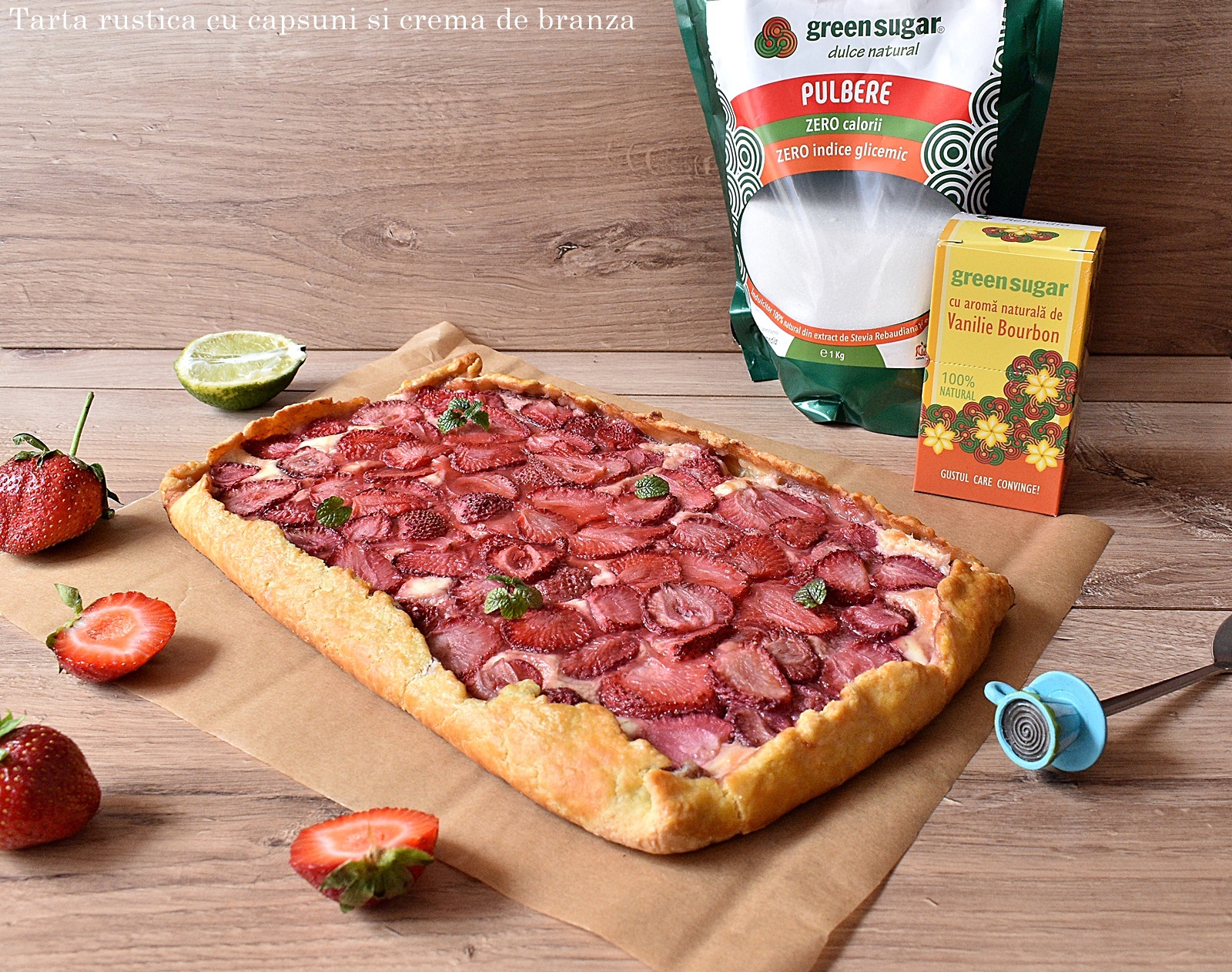 Marginile aluatului le pliati spre interior, sa vina putin si peste capsuni.